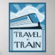 Im Mittelpunkt dieses Retro-Plakatdrucks steht meine Fantasie eines Vintagen schlanken Blinkerzuges. Der Text im Deko-Stil auf dem blauen monochromen Bild lädt zum "Fahren mit dem Zug genießen" ein. Aus meinem digital erstellten Originalbild.