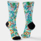 Meine Originalkunst ist auf diesen lustigen, verrückten Socken, die ein Vintages Blumenmuster in Aqua-Blau- und Orangetönen aufweisen und von mir in Aquarellkunst nachgebaut wurden. Diese gemütlichen Socken gelten als nachhaltiges Produkt und werden mit wasserbasierten Tinten bedruckt. Stilvoll und komfortabel, machen sie ein großartiges Geschenk oder kleine Geschenk. Eine Größe passt wirklich für alle.