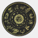 Vintages Astrologie-Rad mit allen Zeichen des Zodiaks in Gold auf schwarzem Hintergrund