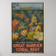 Retro-Design mit farbenfrohen tropischen Fischen und Korallen mit einem Boot auf der großen Barriere Riff australia