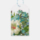 Handgemalte kalkfarbene Aquarell Kinderwagen Duschgeschenk-Tags mit Akzenten von Türkis und Gold.