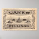 Papieretiketten werden seit den frühen 80er Jahren verwendet. Sie wurden von europäischen Künstlern nach Amerika eingeführt, und dieser Druckprozess wurde als Lithografie bekannt. Dies war eine der ersten Formen kommerzieller Kunst. Dieses Vintage französische Poster ist Werbung für eine Bäckerei. Das schwarz-beige Schild enthält die Worte "Kuchen" und "Füllungen" und zeigt eine große Auswahl an Kuchen und Gebäck. Dieser Druck wäre perfekt für den Bäcker in deinem Leben.