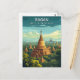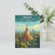 Journey into history with this enchanting Bagan Myanmar travel postcard! This captivating illustrated design transports you to the vast plains of the Bagan Archaeological Zone, showcasing the mesmerizing landscape dotted with thousands of ancient temples and pagodas.