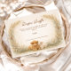 Ein charmantes Landdesign mit einem flauschigen Kalb, einem süßen kleinen Lamm und kleinen gelben Küken, eingebettet in weiche Wiesenwildblumen. Der warme Pergament-Hintergrund und die gedämpften Erdtöne schaffen eine gemütliche, rustikale Atmosphäre mit einem sanften Märchenbuch-Gefühl. Zarte Grünpflanzen umrahmen das Layout, während die Farmtier-Illustration Wärme und Persönlichkeit hinzufügt. Perfekt für eine neutrale, ländliche Feier mit klassischem Farmhaus-Charme.