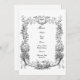 Sehr verzierte antike Barock Rokoko Hochzeitskarte mit Blumengarten, Vögeln, Kirschen und zwei flammenden Herzen mit einem Blumenkranz verbunden. Sie können den Text leicht bearbeiten und die Hintergrundfarbe in dieser Designvorlage ändern.