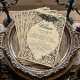 Elevate your gothic wedding with a Victorian-inspired wedding program that exudes timeless elegance and mystery. Designed to resemble an antique book binding, this stunning design features intricate a black lacey filigree on an aged tan parchment background, evoking the charm of a bygone era. A bat with its wings spread sits at the pinnacle of the design. Let your love story unfold with a program as unforgettable as your day. Created by Simply Farmhouse Press.