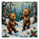 Vintage Bear Cubs Playing in Snowy Christmas Poster