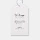Diese Vintagen Script Begrüßungstags sind perfekt für eine minimalistische Hochzeit. Das romantische Schwarz-Weiß-Design besticht durch eine einzigartige whimsical Typografie mit schlichter böhmischer Optik. Anpassbar in jeder Farbe. Behalt das Design minimal und elegant, wie es ist, oder personalisiere es durch Hinzufügen von eigenen Grafiken und Kunstwerken. Personalisieren Sie die Tags mit dem Ort Ihrer Hochzeit, eine kurze Begrüßung, Ihre Namen und Hochzeitsdatum. Diese Tags sind ideal für Hochzeiten in Urlaubsort und Begrüßungstaschen für Hotelgäste.