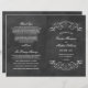 Dekorative Wirbel und Schnörkel umrahmen dieses Vintage, inspirierte Hochzeitsfeierprogramm. Rustikales schwarzes Chalkboard texturierter Hintergrund mit weißem Design. Personalisieren Sie den benutzerdefinierten Text für Ihr Brautparty, Zeremonie Informationen, und danken Sie Ihnen Nachricht. Hinweis: Diese Textgewichtspapierprogramme kommen flach an und müssen zum Zusammenbauen zusammengelegt werden.