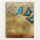 Ein einzigartiges und Vintag-inspiriertes Design mit braunem/braunem Hintergrund und vier hellblauen Schmetterlingen. Es gibt wunderbare Elemente, wie Teekessel, Scrollarbeiten und Schreiben