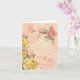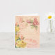 Romantisches und nostalgisches Design mit Text aus der französischen Werbung, heitere Rose in Gelb und Rosa und gravierte Schnörkel auf einem sanft gealterten rosa Trellis Hintergrund.