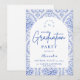 Vintage Blue Botanical Graduation Party Einladung