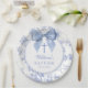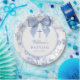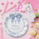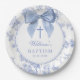 Vintage Blue Bow Floral Baptism Christening Pappteller