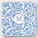 This coaster features an elegant, timeless floral design rendered in rich shades of blue against a soft, light background. Delicate botanical elements—blossoms, leaves, and winding stems—flow organically across the surface, creating a balanced composition. The artwork has a hand-illustrated, slightly textured look reminiscent of vintage toile or traditional botanical prints. Varying tones of blue add depth and dimension, giving the pattern a layered, almost painterly feel. Overall, it evokes a classic, refined aesthetic—a perfect blend of vintage charm and fresh, airy sophistication.