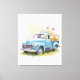 Vintage Blue Truck with Easter Eggs & Tulips Leinwanddruck