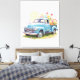 Featuring a classic retro pickup truck overflowing with giant colorful Easter eggs and blooming pink and yellow tulips, this design captures the joy of the season. The soft pastel colors and sunny background make it perfect for farmhouse-style home decor, cute Easter greeting cards, or unique holiday gifts.