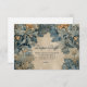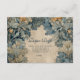 This baby shower design features a peaceful woodland scene with soft blue foliage, gentle bunnies, and an antique parchment center inspired by vintage storybook and botanical illustrations. Muted blue-green tones and layered forest details create a calm, timeless look with old-world charm.