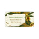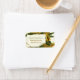 Vintage, gelbe Helenium-Blume mit grünen Blätter Vintag zeichnend Hochzeitslabel, mit einer Aquarellfarbe zeichnend Helenium-Zweig mit gelben Farbtupfern wie Blume und einer eingeprägten Note auf braunem und Elfenbeinhintergrund. Ein neuer Ansatz für ein Vintages Design.