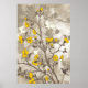 Vintage Blume gelb, taupe Blumengrunge maßgeschneiderte Poster-Design, mit einem braunen blühenden Zweig mit hübschen gelben Blüten und einem Vogel auf Grunge Elfenbein, beige, taupe Hintergrund. Sie können Text hinzufügen, falls gewünscht. Das Gelbe kann in jede Farbe geändert werden. Klicken Sie einfach auf "Anpassen".
