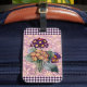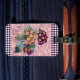 Hübsche Vintage Botanicals auf einem lila, gebeutelten Hintergrund mit lila und weißem Harlequin Diamantmusterrahmen verleihen dem Gärten ein schönes Element.