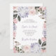 Diese wunderschöne Hochzeitseinladung besticht durch einen Vintagen Aquarellrahmen in Rosa und lila Hydrangea-Blume und Rose. Die elegante moderne Schrift und der klassische Text sind ebenfalls in Weiß gehalten.