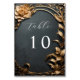 Entspannen Sie bei der Hochzeitsfeier mit den Vintagen Hochzeitsfeiern der "Theatralischen Reverie Collection". Jede Tischnummer ist mit einem faszinierenden rustikalen Hintergrund geschmückt - blau, königlich lila, grün, rostbraun, Holzkohleschwarz und Bühnenrot - mit einer Blume und einem Blattwerk aus Rose in einem goldenen Metallic-Effekt. Genießen Sie den Vintagen Charme, während diese Tischnummern jedes Kernstück umrahmen.