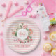 Vintage Blume Rosa Streifen Monogramm Babydusche Pappteller