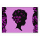 Eine retro Vintage Entwurfsaufmachung, die magentarote Blumen in der afrikanischen amerikanischen Afrofrau umgeben wurde durch eine schwarze und magentarote Kamm-Muschel ist, umrandete Mosaik.