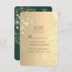 Vervollständigen Sie Ihre Hochzeitssaison mit unserer Vintag-inspirierten böhmischen RSVP-Karte, die moderne Eleganz in luxuriösen Goldtönen ausstrahlt. Diese mit schicken vergoldeten Blumenspitzen verzierte Karte Set die Bühne für eine unvergessliche Feier. Das smaragdgrüne Skript fügt eine Touch von Eleganz hinzu und lädt Ihre Gäste ein, ihre Anwesenheit mit Stil und Anmut zu bestätigen.