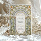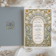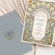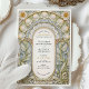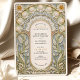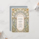 Diese exquisite Hochzeitseinladungskarte besticht durch ein atemberaubendes Jugendstil-Design, das durch den Bio Fluss und die aufwändigen Details der Dekorativkunst des frühen 20. Jahrhunderts inspiriert wird. Die Vorderseite zeigt einen sorgfältig ausgeschmückten Blumenbogen mit skulpturalen, botanischen Elementen in Soft Creme, Gold und Salbei auf einem hellblauen Hintergrund. Zierfiguren, gewölbte Motive und weitläufige Schriftrollen bilden einen romantischen Rahmen rund um die Hochzeitsdetails, der in einer eleganten Schriftart- und Serifenkombination präsentiert wird. Auf der Rückseite der Karte befindet sich ein minimalistisches Monogramm im Wappen-Stil mit einem stilisierten Baum, umgeben von Lorbeer-Blätter und einem fließenden Band. Ideal für Paare, die eine raffinierte, zeitlose Ästhetik suchen, ist diese Einladung ideal für feierliche Hochzeiten mit Vintagen, botanischen oder romantischen Themen.