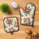 Vintage Blumenmuster mit klassischer Eleganz Ofenhandschuh & Topflappen-Set