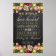 13,5" x 23" Vintages Blumenchor-Begrüßungszeichen; er hat hier Herz gestohlen, also wird sie morgen seinen Nachnamen stehlen! Ideal für Hochzeitsessen, Proben, Polterabende und Hochzeitsempfang. Fügen Sie einfach Ihre individuelle Namen und das Datum zu diesem atemberaubenden 13.5" x 23" Poster hinzu. Bitte klicken Sie auf den Button "Anpassen", um Farbe, Größe und Layout des Schriftartes zu ändern. Sie können auch ein anderes Poster auswählen und auch die Ausrichtung des Zeichens ändern.