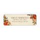 Vintage Rücksendeadressen-Aufkleber mit Ölgemälden, rot-korallenfarbene Blume und grüne Blätter mit Ihrem Namen und Ihrer Anschrift in Braun. Entworfen, um mit unserer Vintagen Blumenhochzeit-Kollektion zu koordinieren.