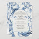 Vintage Blumenweiße und blaue Chinoiserie Hochzeit Einladung