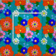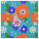 Hübsches Blumendesign inspiriert durch Retro-Stoffmuster aus den 1960er und 1970er Jahren in vielen hellen Farben wie Orange, Rosa, Blau und Gelb