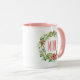 Dieser grüne und rosa Blumenkranz mit Artischocken, Blume, Blätter, Federn und Sukkulenten. | © und ® Bigstock® - Alle Rechte vorbehalten.
