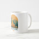 This retro-style travel art coffee mug features a timeless illustration of the Boston skyline, inspired by classic mid-century travel posters.