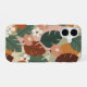 Retro pattern composed of stylized leaves and flowers, with an earthy palette and a subtly grainy texture.