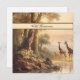 Vintage botanische Malerei von drei Giraffen durch einen Fluss im Dschungel bei Sonnenuntergang