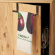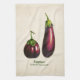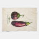 Küchenhandtuch in Vintager botanischer Darstellung von Auberginen (Solanum Melongena), digital verbessert und farbig, auf antikem beigen Hintergrund