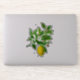 Aufkleber in einem Zitronenprint auf einem grünen Zweig auf der Grundlage Vintager botanischer Kunstelemente, digital verbessert