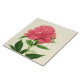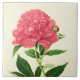 Keramik-Kachel in einem Vintagen botanischen Aufdruck, digital verstärkt, aus Single, weich korallrosa Pink-Peony-Blume, auf weißem/cremefarbenem Hintergrund