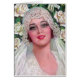 Erleben Sie zeitlose Eleganz mit dieser exquisiten Grußkarte "Vintage Braut mit Rose". Diese Karte mit einer schönen Abbildung einer Braut, die mit einem zarten julistischen Oberschleier geschmückt ist und von weich weißen Rosen umgeben ist, erinnert an den romantischen Charme einer vergangenen Epoche, insbesondere der Art Deco Periode der 1920er Jahre. Dieses Design der I Card Gallery eignet sich perfekt für Verlobungen, Hochzeiten, Jubiläen oder Feiern einer Liebe für Vintage Ästhetik und bietet eine einzigartige und unvergessliche Möglichkeit, Ihre Gefühle zu vermitteln