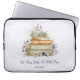 Schützen Sie Ihren Laptop im buchmäßigen Stil! Dieser florale Aquarellärmel verfügt über einen Stapel Bücher, beige und blaue Blumen und ein individuelles Buchangebot - ein Geschenk für Buchliebhaber!