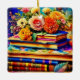 Vintage Bücher und Blume Keramikornament