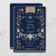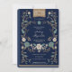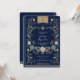 Die Einladung zur Seefahrt und Goldtaufe ist so konzipiert, dass sie wie ein altes Vintages Buchcover aussehen. Die Einladung besticht durch einen eleganten marineblauen Hintergrund mit goldenen Blumenmotiven und verleiht ihm ein luxuriöses und raffiniertes Aussehen. Die verwendete Typografie ist traditionell und in goldener Farbe, was das Vintage Gefühl der Einladung noch verstärkt. Die Einladungskarte ist so konzipiert, dass sie wie ein altes Buchcover aussieht, wobei die Blumendesigns eine Touch von Eleganz und Weiblichkeit hinzufügen. Die Farbkombination aus Marineblau und Gold verleiht ihm einen raffinierten und zeitlosen Look, der sich perfekt für ein formales oder Vintages Event eignet.