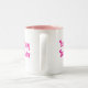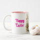 Pretty, vintage picture of a bunny with a colored egg, sitting in flowers, is featured on this two tone mug for Easter. With message, "Happy Easter", on each side of the picture with a white background and the inside of the mug in pink, makes this a great mug to use yourself or give as a gift for the Easter holiday too!