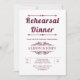 Vintage Elemente und bordeauxrote und weiße Typografie Hochzeit Probe Dinner Einladung. Dieses elegante Hochzeitsdesign zeigt den Text "Probe Dinner" in fett bordeauxfarbener Typografie und Vintagen Elementen, die Rahmen für den Text bilden.