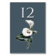 Elegante Hochzeitskarte im flachen Stil, die in einer steinblauen Tischnummer mit Vintagen Kunstwerken von weißen Calla Lilien gemacht wurde. Personalisieren Sie die Nummer für jede Tabelle auf Ihrem Empfang. Die passenden Hochzeitsprodukte stehen zur Verfügung.