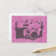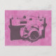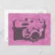 Vintage Kamera mit rosa Wirbel Hintergrundekarte. Gut für jeden Anlass.